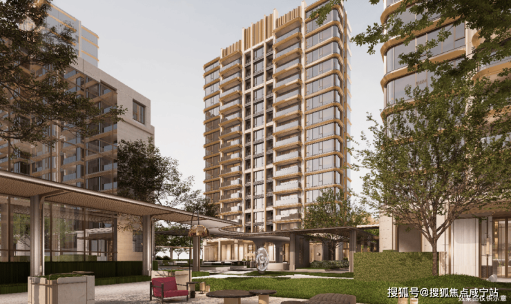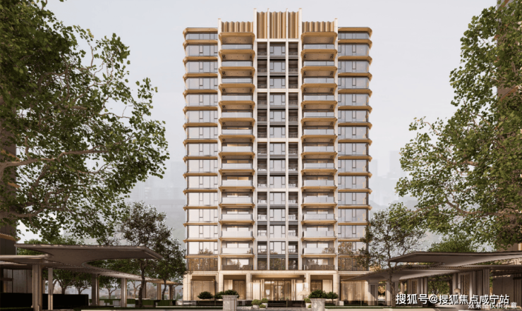 从官方释放的效果图可以看出,项目外立面窗墙比很高,据说用了全幅玻璃幕墙,颜值还是很可的,大面积采用暖色调,点缀香槟金配色,实际可能是想营造阳光下熠熠生辉的感觉。
