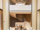 终极改善客群的目光聚焦于220-286㎡四房。以245㎡“寰幕澐湾”样板间为例,270°三面观景设计让业主可同时欣赏黄浦江、河景与园景,堪称上海滨江环幕全景平层范本。约8.5米宽的客厅采用无隔断设计,搭配270度环幕玻璃,归家即能透过巨幕玻璃直抵江面;约8米宽、1.8米进深的超尺度观景阳台,以私人观景甲板理念打造,成为内环稀缺的观江空间。该户型实现南向约15米瞰江面、东向纵览河与园、北向拥揽世博与园景的三重景观体验,重新定义了滨江豪宅的视野标准。