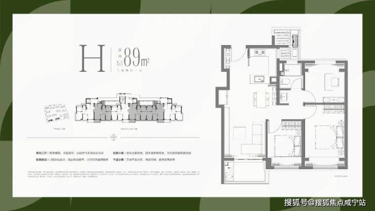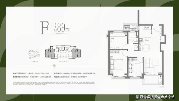 1、全部南向大面宽设计,保证最为出众的采光和视野需求;