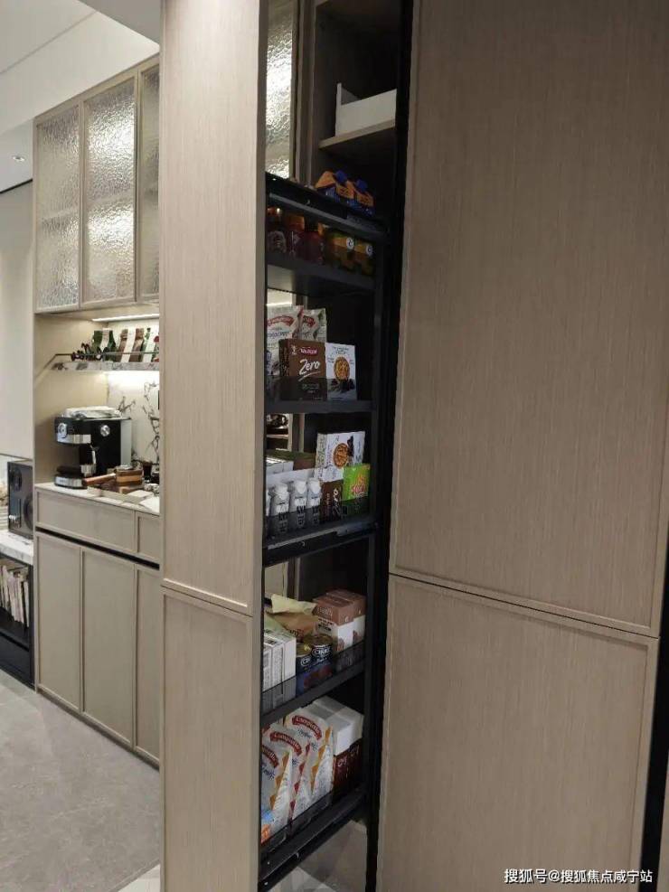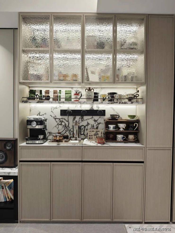 本次还增加了非常实用的零食柜和餐边柜,未来业主在这里可以作为自己的一个日咖夜酒区域。