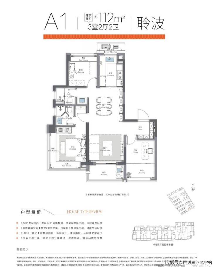 建面约112㎡3房,独立玄关入户,南向双阳台,如果南次卧打通阳台,那么就可以得到一个媲美主卧尺度的南次卧;边套主卧带L型转角飘窗。