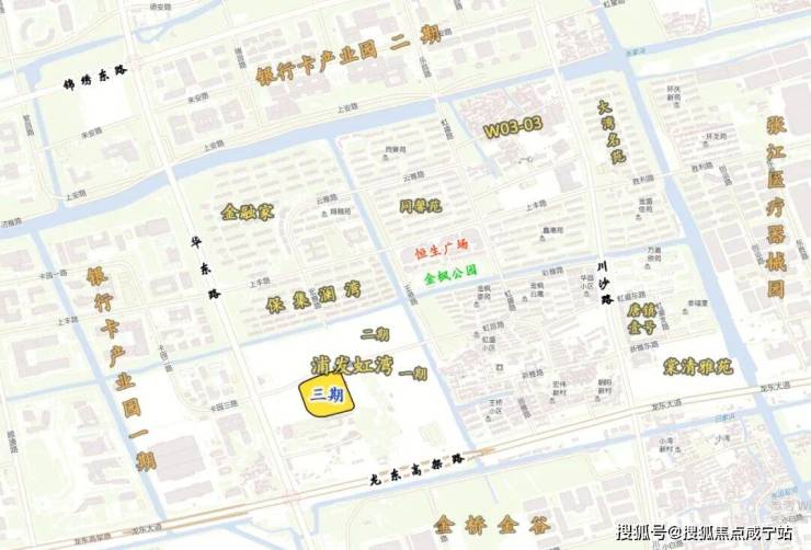 浦发虹湾,位于龙东大道和华东路的交汇处,所处的整个区域,四面环水,就如同一座漂浮在水面上的“环屿之城”。