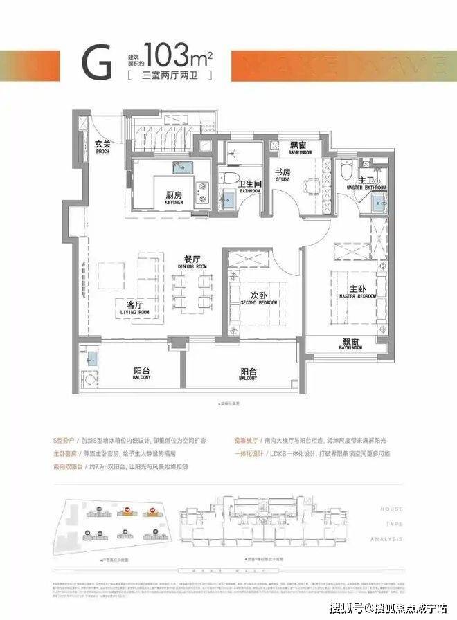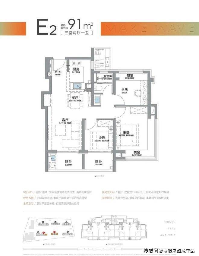 “南向双阳台+南北双飘窗”,构筑真3房户型!