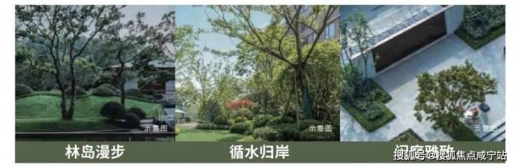 林岛漫步围绕中央景观,以现代艺术手法,打造森林岛屿景观循水归岸呼应外部天然水系,内部设置特色水景,串联不同节点闲庭雅致以树木、水系与局部连廊体系融合,共同组建起社区与居所之间的联通介质。