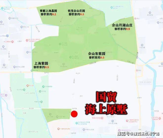 地块所在的广富林板块,本身的生态资源非常优秀,项目西侧一路之隔就是广富林文化遗址、广富林郊野公园、直线距离约1km+是辰山植物园,北面直线距离约3km是佘山国家森林公园、月湖雕塑公园等。