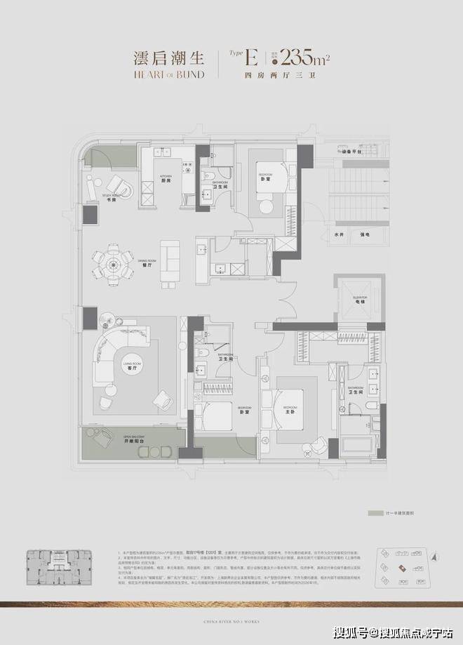 过去10年上海一线滨江住宅,大户型是绝对主流,120㎡级3房产品从未出现。澐启滨江是因2021年后滩九宫格有中小套型指标要求,得以推出120㎡级产品。