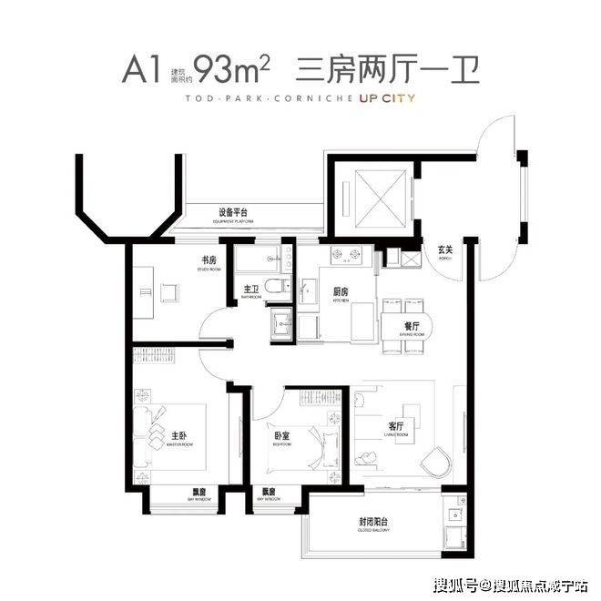 此外,项目还有建面约93㎡3房1卫和建面约102、103㎡3房2卫。