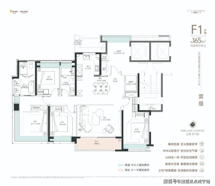 建面约165㎡的“公园头排全景舱”,以类一梯一户的尊崇仪式感、四开间朝南的极致采光、LDKB一体化+IMAX级宽厅的创新布局,打破了传统空间的界限。超大阳台、全屋飘窗带来了约270°环幕视野,将公园盛景尽收眼底。主卫双台盆、N+1百变空间等设计,更是赋予了生活无限的可能与从容。