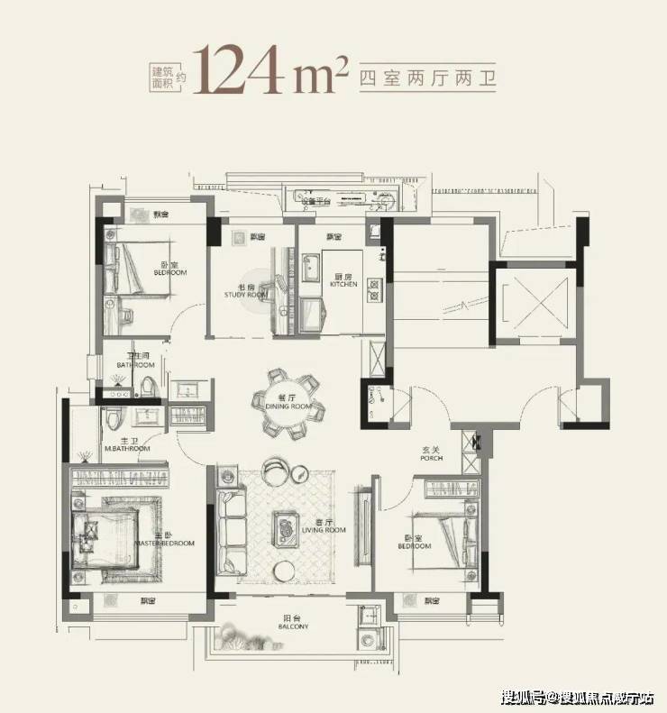 经典平衡对称美学,极致线条设计,让建筑庄严不失灵动。大面玻璃、金属格栅、现代铝材搭配,辅以玫瑰金与学府灰色彩,彰显建筑立面的鎏金质感与美学。4大景观中轴、全域花园主题空间,让家生长在公园里。