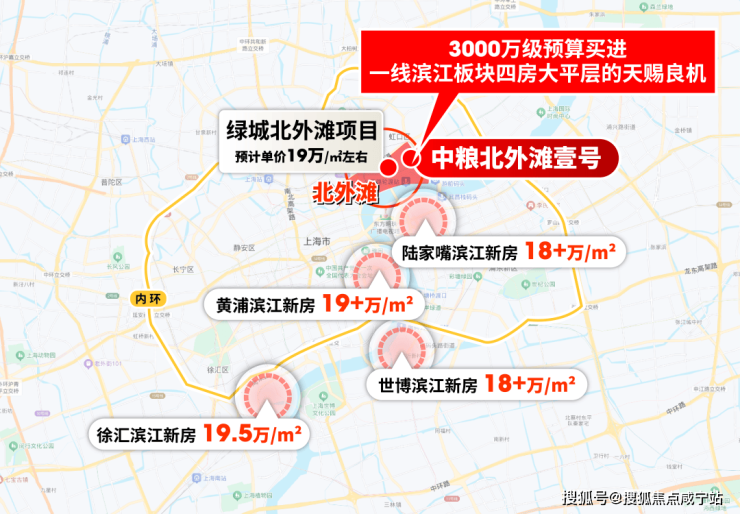 中粮北外滩壹号拿地更早,同样属于北外滩红线范围里,与绿城项目几乎呈现掎角之势,而据知情人士透露,该项目的预计价格仅约15-16万/㎡,项目主推建面约185-228㎡四房,总价约3000万级!如果属实,这个价格无疑是北外滩错过再无的抄底机遇!
