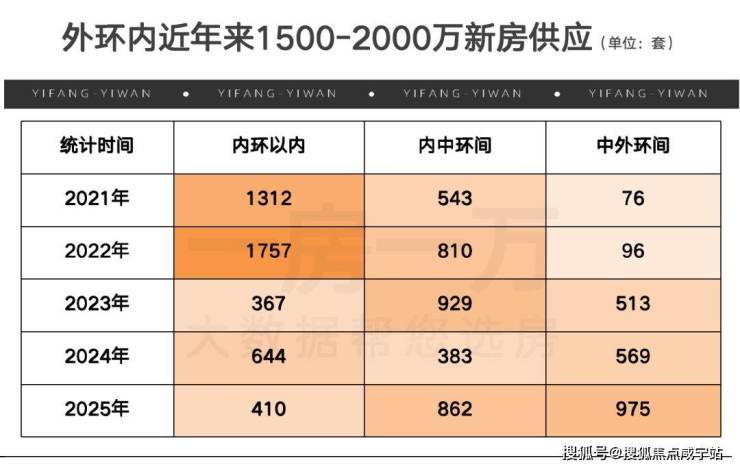 与之相反,一旦出了内环线,1500到2000万的新房供应却持续增长。