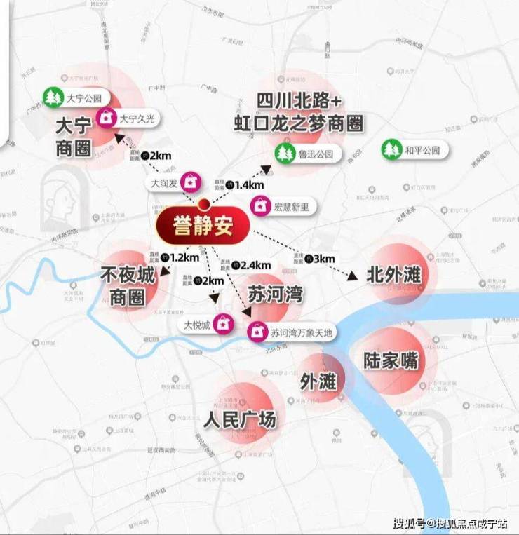 商业方面:虹口龙之梦+四川北路商圈,大悦城,不夜城,大宁商圈等,近的街区商业包括宏慧新里、大润发等等,未来小区还搭配有丰富的社区底商。