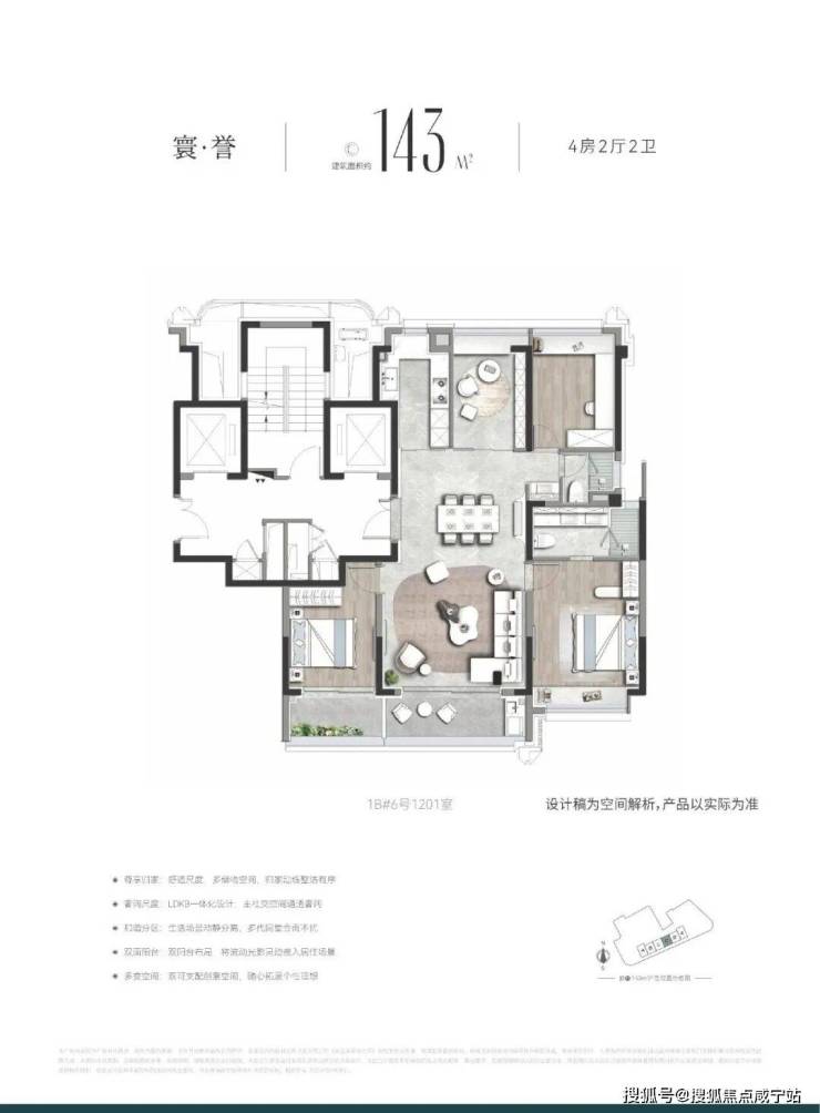 我们先统一来看一下,将推出的建面约143㎡4房户型。