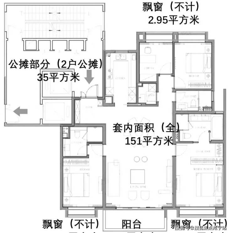 虽然户型少了一间房,但整体公区设计更加豪华。