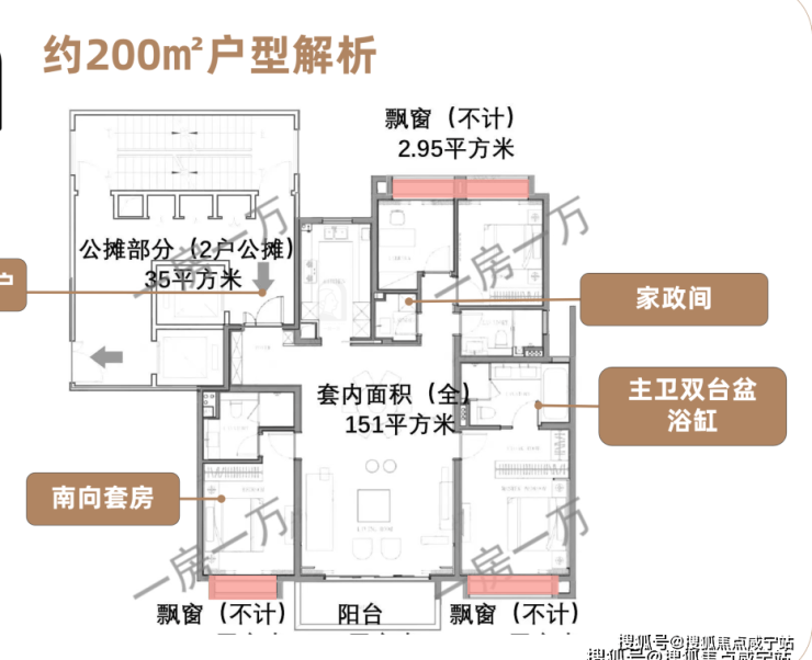 ①建筑面积约200㎡,4室2厅3卫