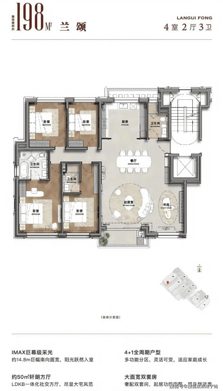 建筑面积约198m²4房2厅3卫【海派法式美学样板】现已惊艳亮相共迎品鉴!