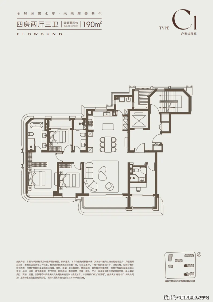 外滩道户型建面约100、120、190、220㎡3-4房,其中约100㎡只有16套,首开户型为预计约120㎡3房和190㎡4房,一共121套。