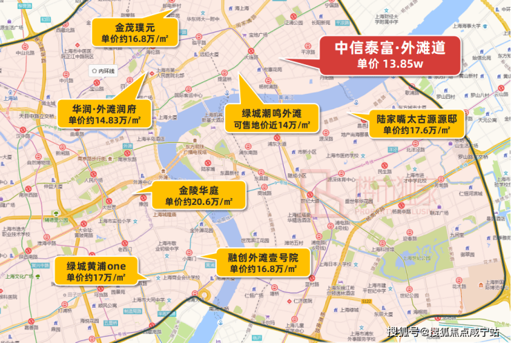 作为一个直线距离滨江只有约500米的新盘,外滩道的价格在内环内+滨江段中堪称是真正的洼地,毕竟隔壁北外滩地王,可售楼板价都接近14万/㎡了!