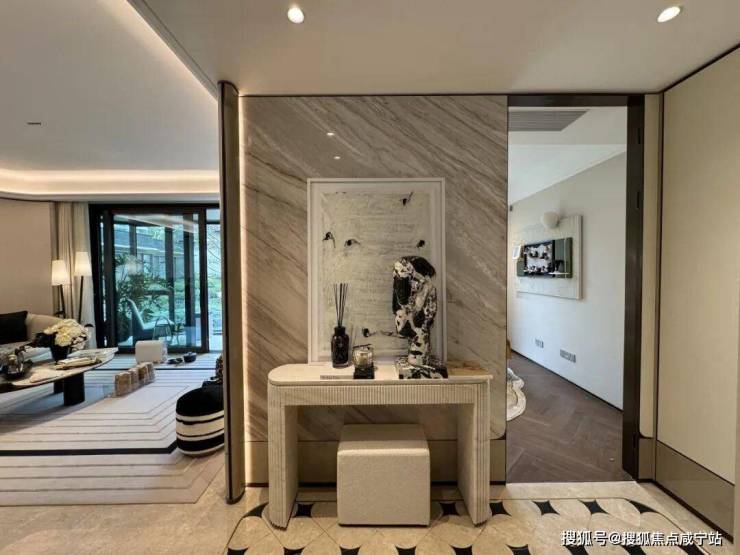 第一,无论大小户型,全都是类一梯一户+电梯前厅+独立玄关+入户子母门,归家仪式感算是拿捏住了,既保障了私密性,又可以向外拓展收纳空间;