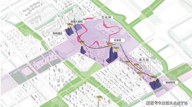 未来塔:位于CAZ的正中央,建成约300米,将成为嘉定甚至是上海西北第一高楼,是真正的C位地标