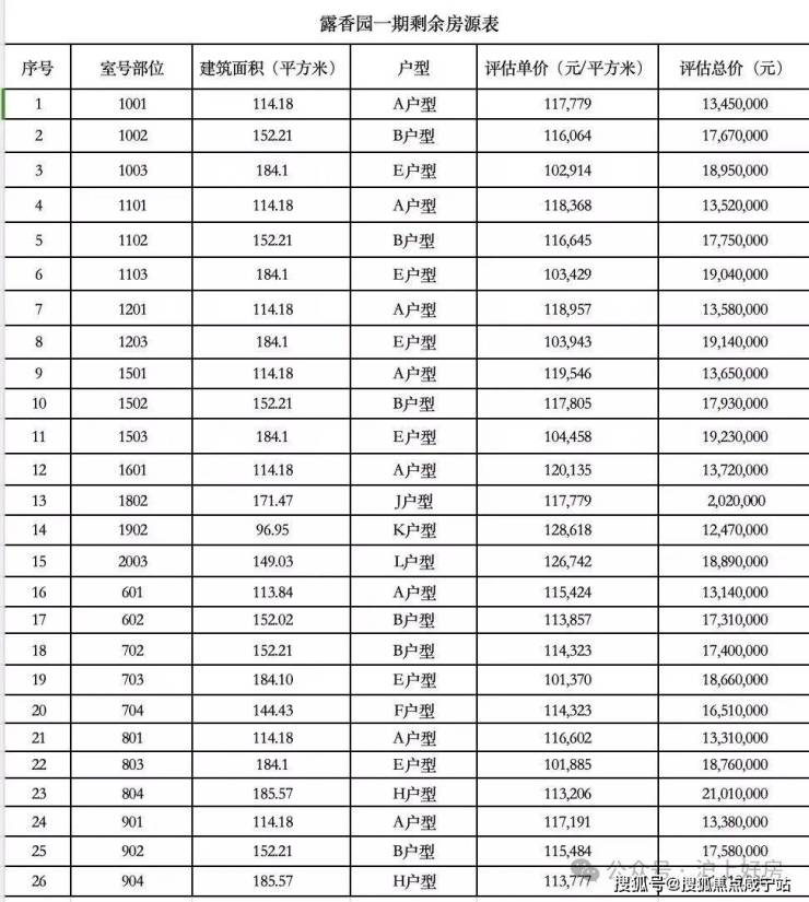 馥公馆一房一价表如下