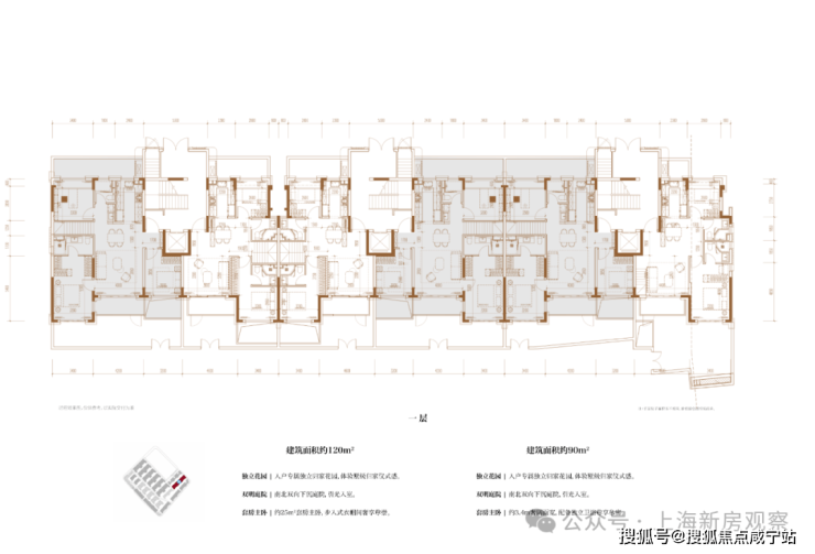 项目主打3层的超低密洋房产品,另有3套联排产品,户型类型丰富;洋房为创新的多层退台式洋房,层高高于传统常规洋房产品,3.3-3.6m层高对标别墅产品层高。