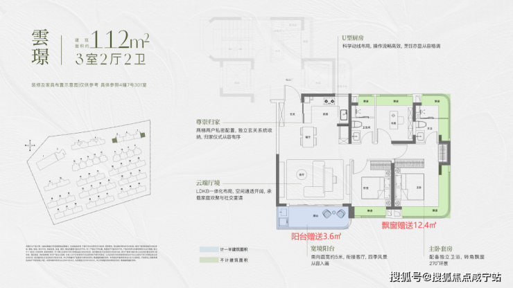 同时休息区全飘窗赠送,主卧更南北双转角飘窗,主卫也有双面飘窗空间,大大提升尺度感。