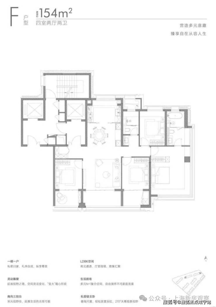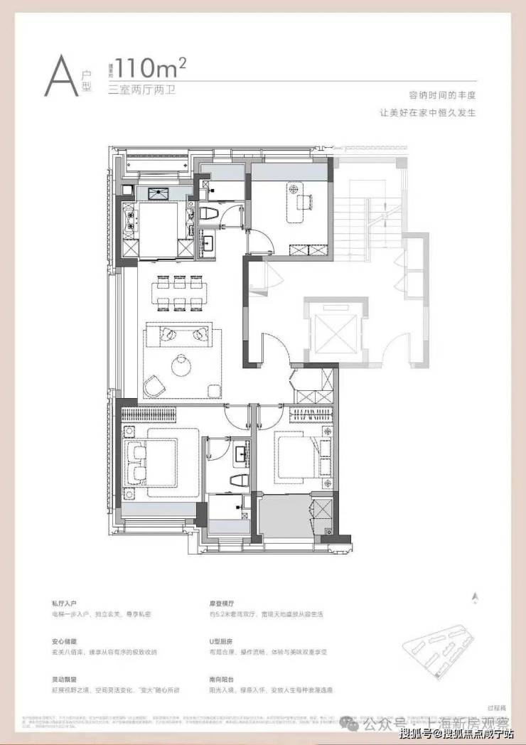 部分楼栋设有架空层,社区设置下沉式庭院、泳池会所,并配建部分社区配套与公共租赁住房。产品上也引入270°转角玻璃、双阳台、N+1灵动空间等设计。