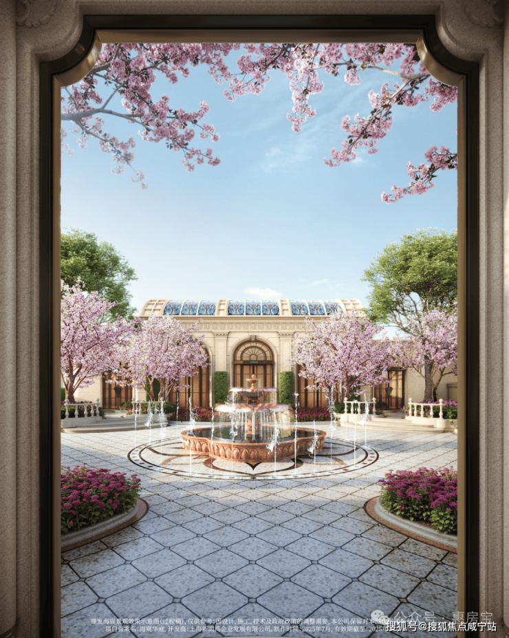 漫步约200米繁花长廊纵轴,贯穿五重东方院落礼序,步步生景:「海天华堂」巍然端庄,玉兰门庭仿若有暗香浮动;「华亭烟雨」清波舒卷,晕染江南底色;「凤亭问泉」水声泠泠,回荡浪漫旋律;「夜月涟漪」以下沉水院为镜,倒映高定摩登会所;「黄浦秋涛」对望水岸公园,盛景起伏宛若潮涌。