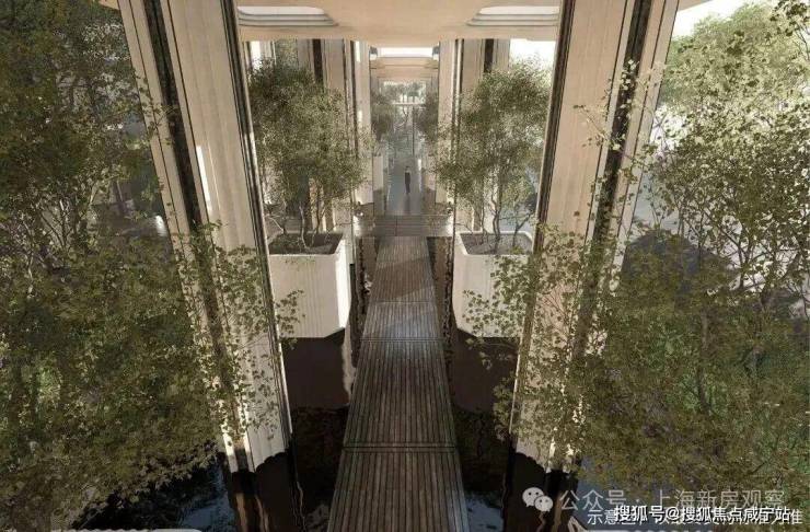 空间布局:九栋25-32层住宅楼以“围合+开放”模式排列,西部楼栋转向设计确保江景最大化,东部楼栋则面向中央景观湾。所有住宅首层全架空,设置下沉式庭院、地下会所及风雨连廊,形成“地面无车位、人车完全分流”的纯净社区环境。
