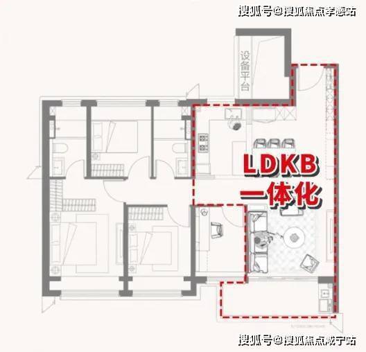 LDKB一体化的设计恰到好处的解决了面积不够的问题。厨房、餐厅、客厅三大空间联通,不仅通透感十足,还构建了一个利用率超高的家庭核心区,在这样高度开放的空间里,即使互不交流,也能保持交流和关注!