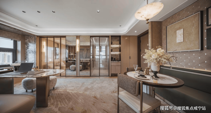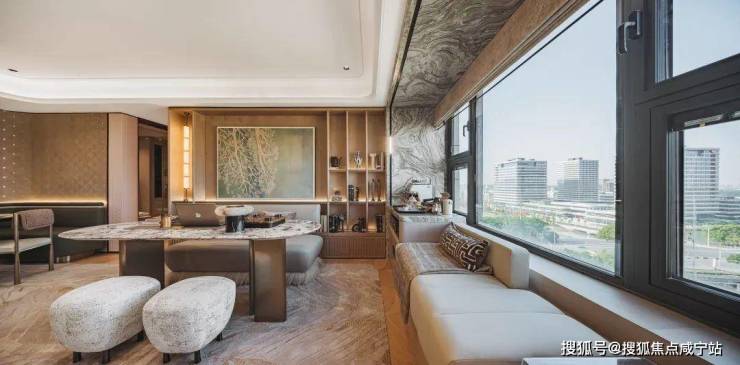 其中样板间也深度契合地块景观优势,将自然融入空间,直面滨江景观资源。巧妙搭配的转角餐边柜,闲暇午后泡一杯香醇咖啡,静坐飘窗旁,抬眼便是波光粼粼的江面,将实用性与观景体验完美融合。