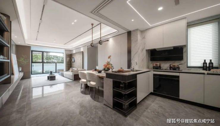 餐客厅踢脚线和厨房门框均为金属材质,开关面板全部定制同色系,把房屋美学做到极致……可以说是狠狠拿捏当下都市菁英人群!