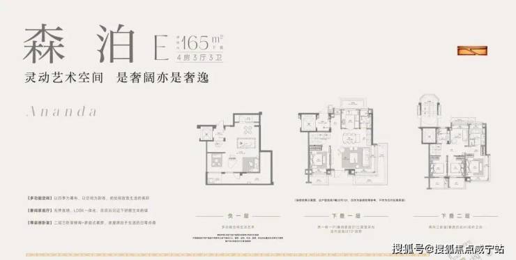 建面约160-165㎡叠拼户型,以“多面宽+多套房+多飘窗+多拓展”为特点,让居住者同时感受到叠墅的空间感与大平层的舒适度。