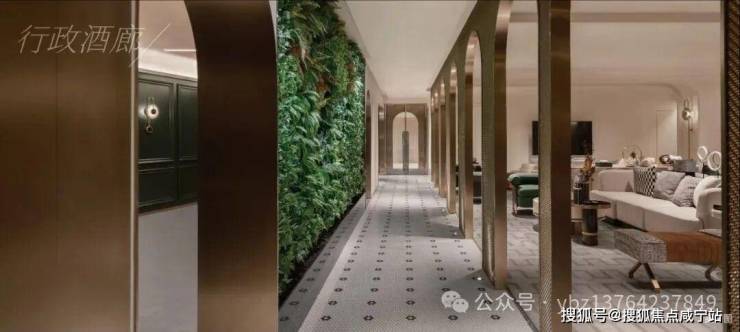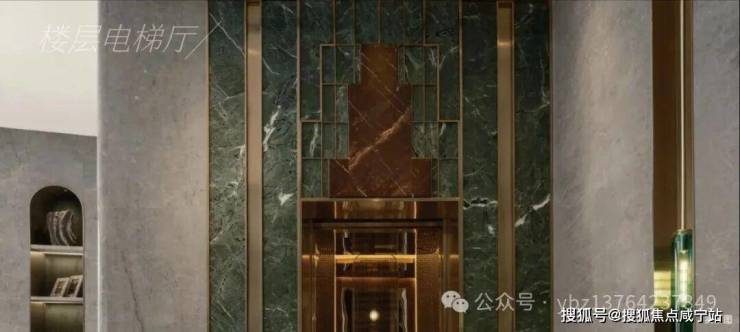大堂的设计,参考奢华酒店的层层递进手法——PRADA绿奢石肌理混合定制金属的门头交织出走在世界前沿的摩登上海的门厅肌理,回应着归家的温暖暗示。