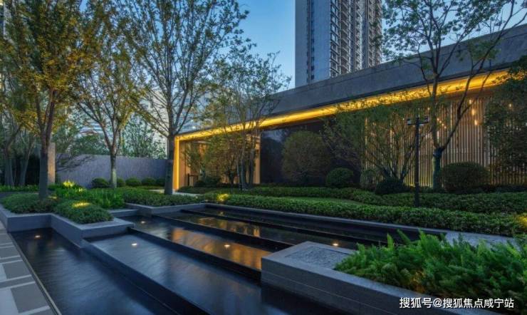 归家动线设置上,业主先穿过酒店式的落客大堂,大堂内设有迎宾待客区,穿过大堂,有灵动水景、景石进入幽静的园林之中。层层递进从喧嚣到静谧、让归家充满了仪式感。