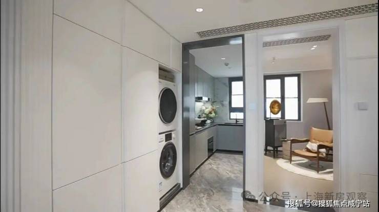还有一整面墙的收纳,两台博世嵌入式大冰箱,一台博世洗衣机,一台博世烘干机,上面一整排还打造了储藏空间。信达·信安里售楼处电话📞400-8800-703如有问题欢迎来电咨询,来电即可享受买房优惠!