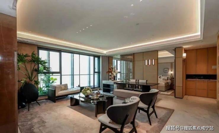 该户型打造了约4.8米面宽阳台,阳光和煦,带来的十足的尺度感。