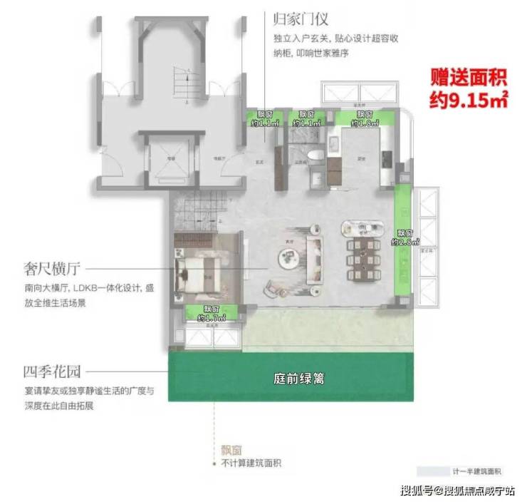 这个户型的附赠率,更高!实际可使用面积高达约234㎡,实得率超139%!