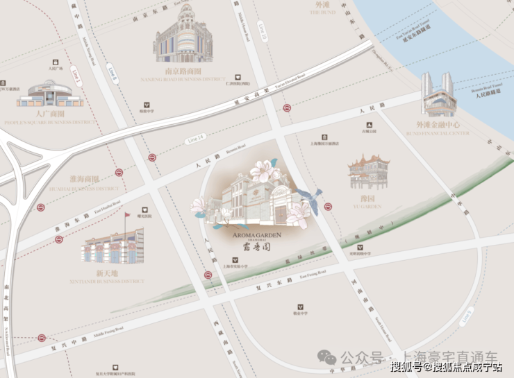 作为上海的绝对市心,露香园直线距离人民广场、淮海路、外滩、豫园等上海市地标性区域均不超过1.5公里,距离陆家嘴直线约2公里。