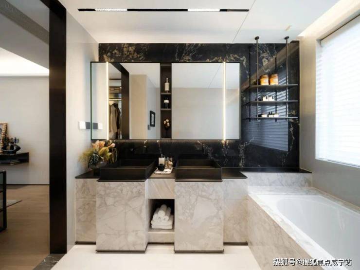 私享电梯厅,带来入户的仪式感;U型厨房,足够放下对开门冰箱;主卧全明的梳妆间和双台盆的设置,给主人带来尊崇感。