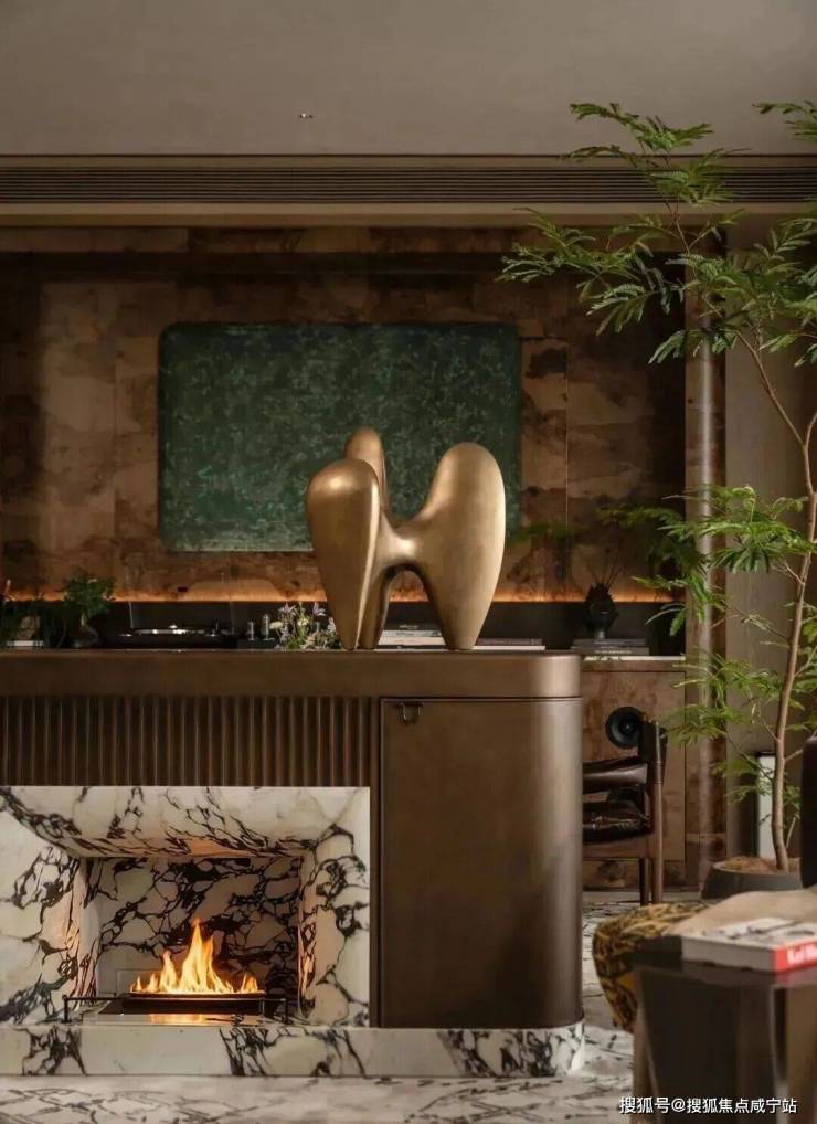而且这个空间的装标也是非常精致的,1.7米双扇铸铝门,搭配宝格丽石材与祥云灰拼花,延伸至电梯厅!皇家白玉石玄关,兼具储物与展示功能,质感温润!