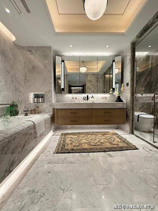 高端品质:由17家国际事务所联合设计,公区采用全进口石材铺设;室内配备嘉格纳四件套、劳芬卫浴等高端品牌洁具,装修标准对标豪宅水准。