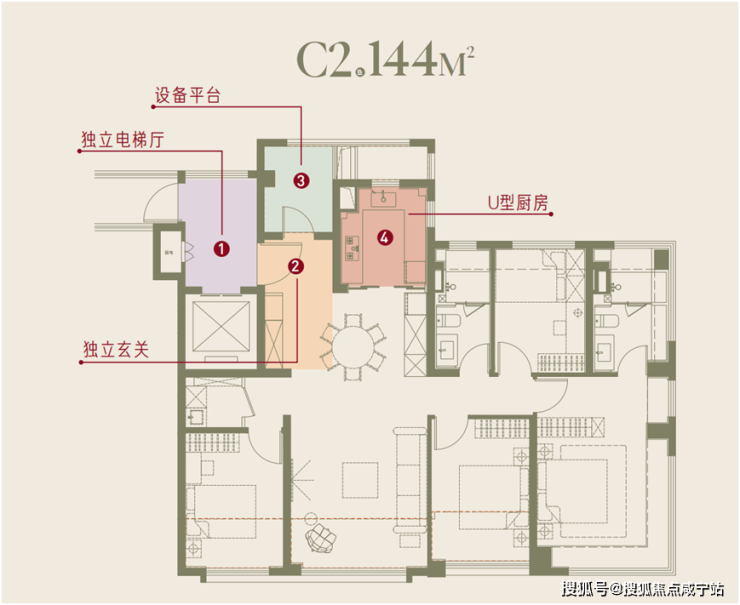 144边套户型:7.4平全明独立电梯厅,实得率超98%,超200m楼间距,视野无遮挡。
