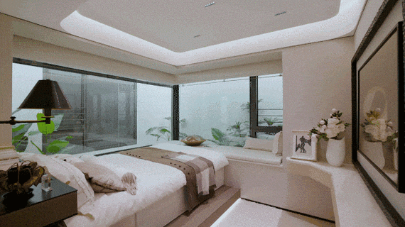 降噪体系通过十重设计,从外到内全方位隔绝噪音:三玻两腔窗+隔音混凝土墙、同