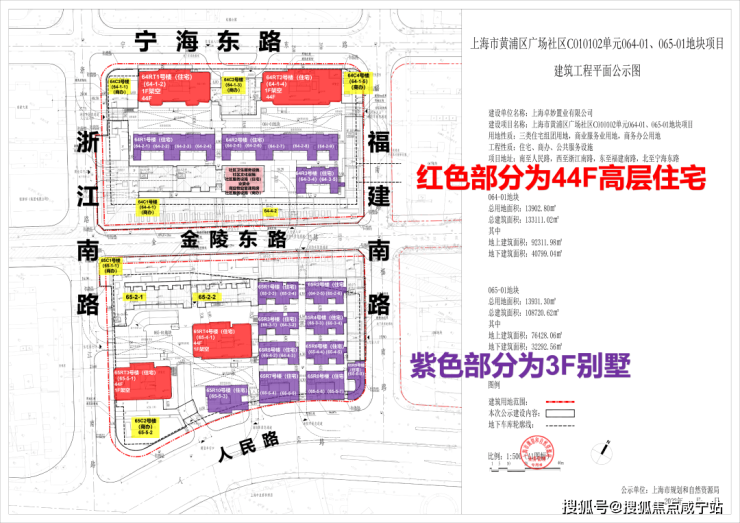 65地块拟建设2栋44F超高层、9栋别墅建筑;