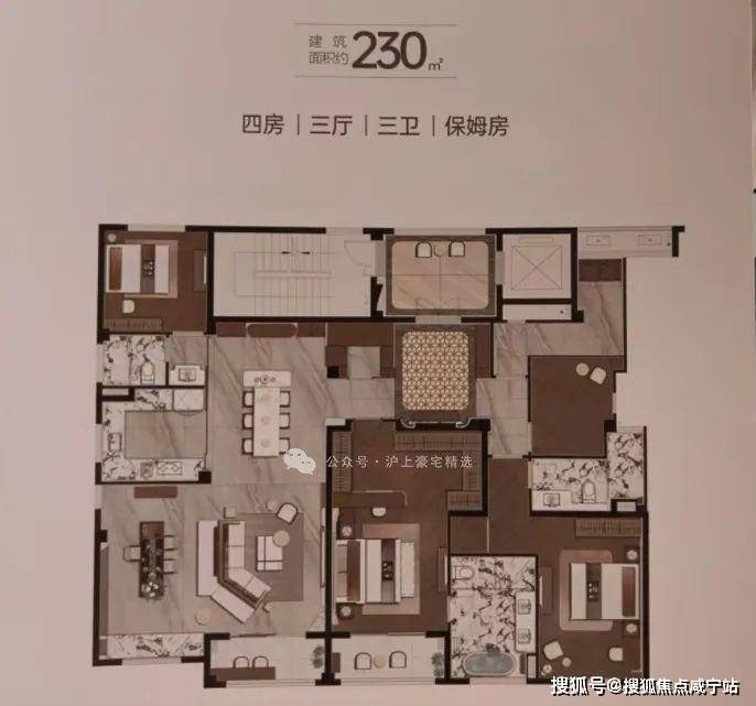 230㎡六房:南向五开间+三套房设计,子母户型可拆分为“独立生活单元”(如3房+1房)321,兼顾亲密与隐私;