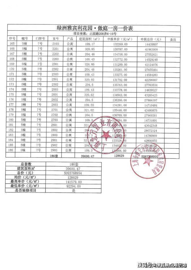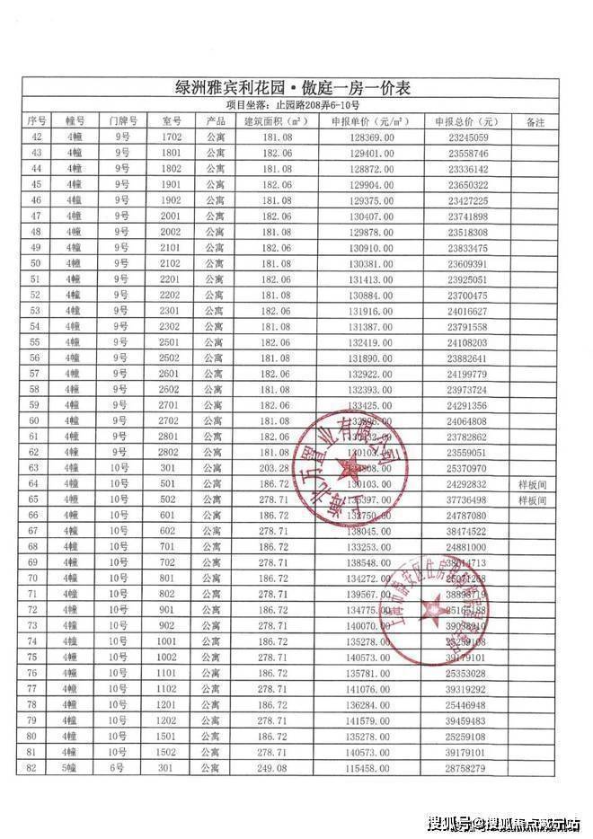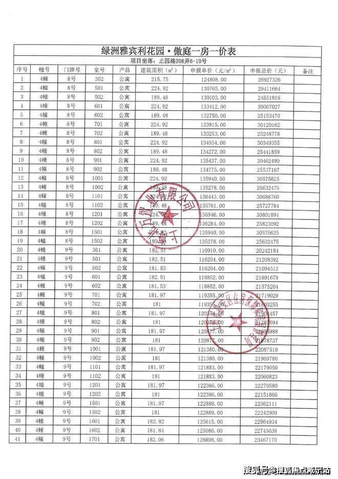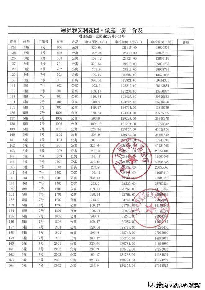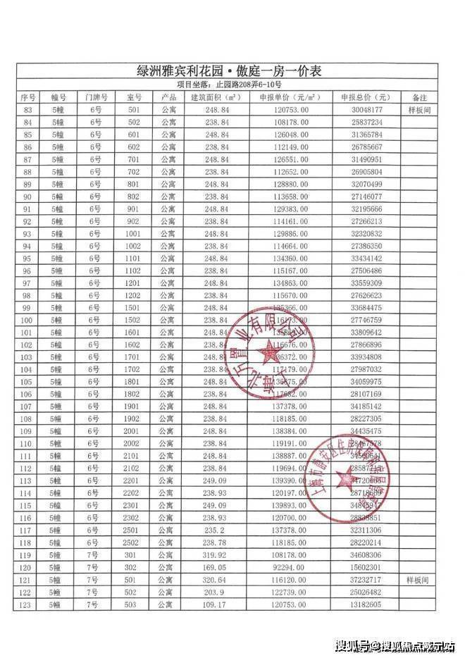 上期一房一价表如下: