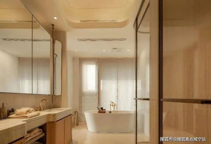 再加上双台盆、浴缸、马桶、淋浴的豪华四件套,把顶豪的尊崇感渗透到每一个日常场景。