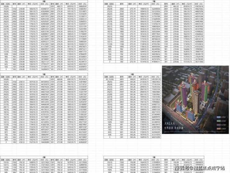 项目各户型价格参考: